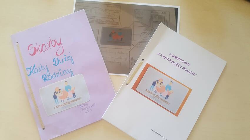 Prezentujemy prace Zwycięzców, rodzeństwa: Bartosza (7 lat) i Damiana (10 lat) z rodziny Cieślikiewicz, którzy przygotowali barwne komiksy pokazujące, gdzie podczas wakacji skorzystali z Karty Dużej Rodziny. Znalazły się tam takie firmy jak: Vision Express, Świat Książki, 5.10.15., Lidl Polska, Deichmann, Polskie Parki Narodowe, JuraPark - Park Nauki i Rozrywki w Krasiejowie, GRATULACJE i pozdrowienia dla całej Rodziny!!!